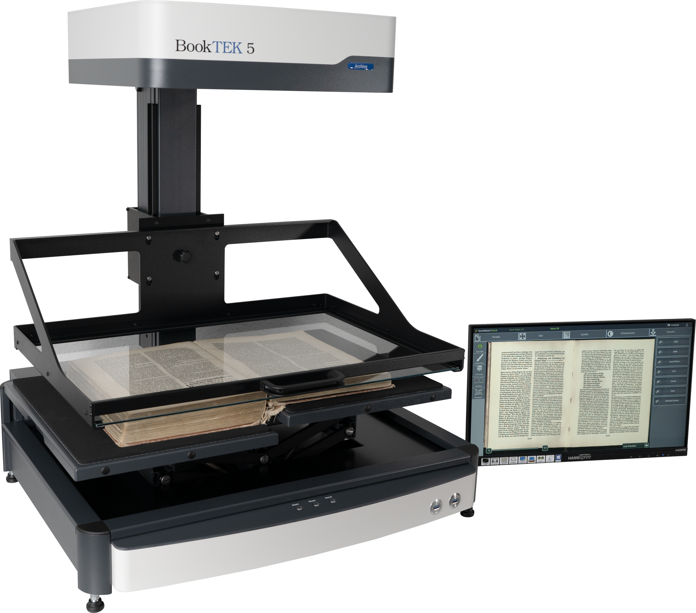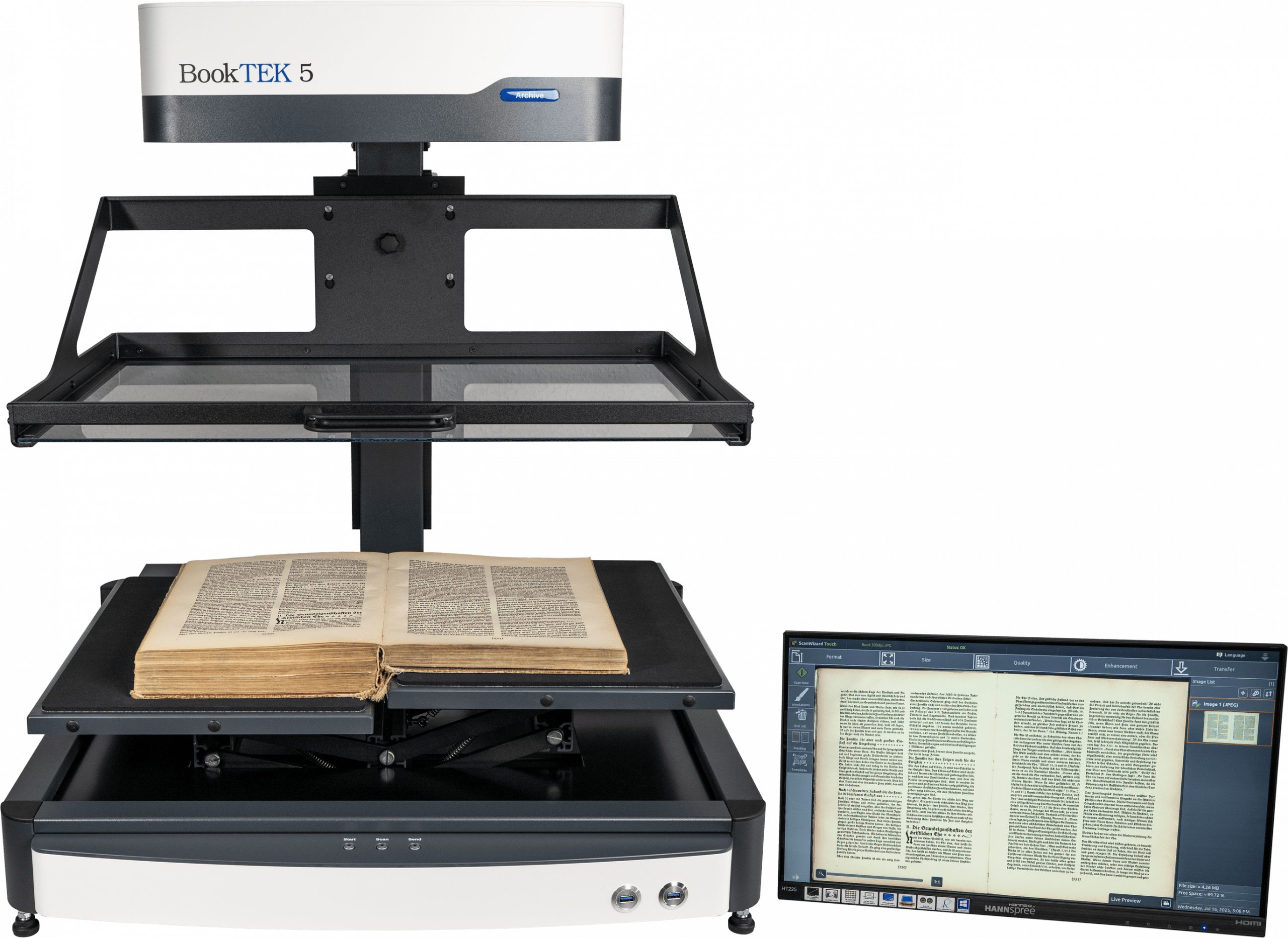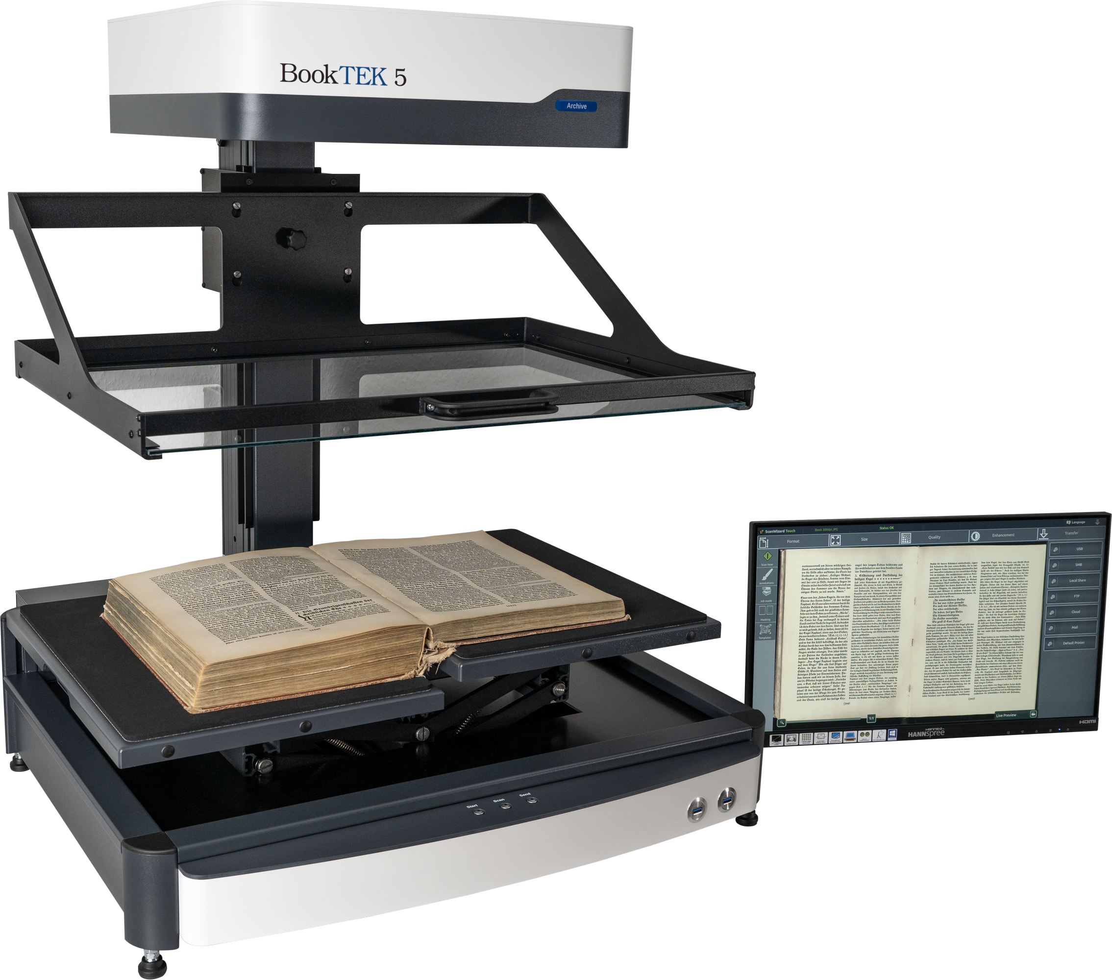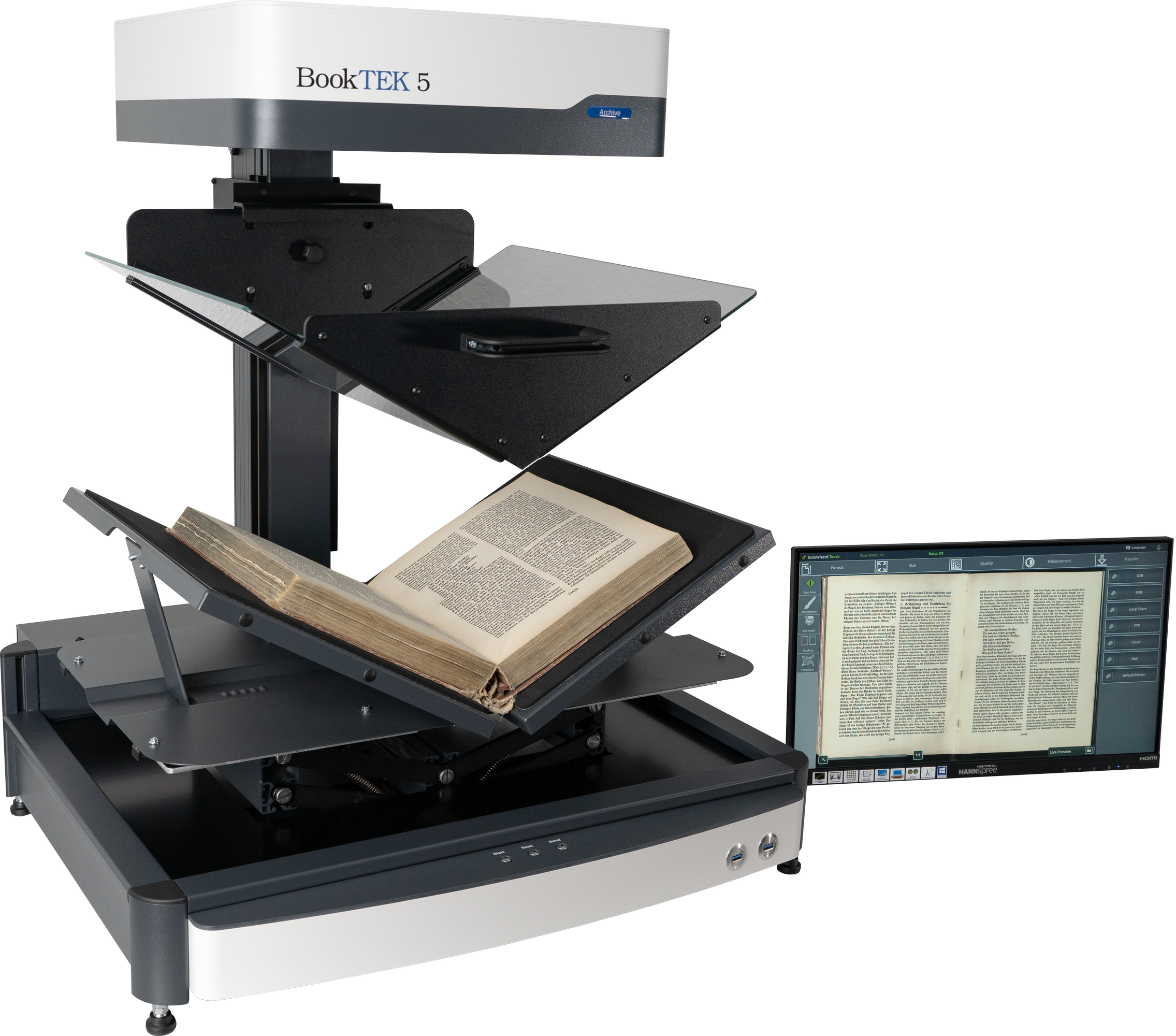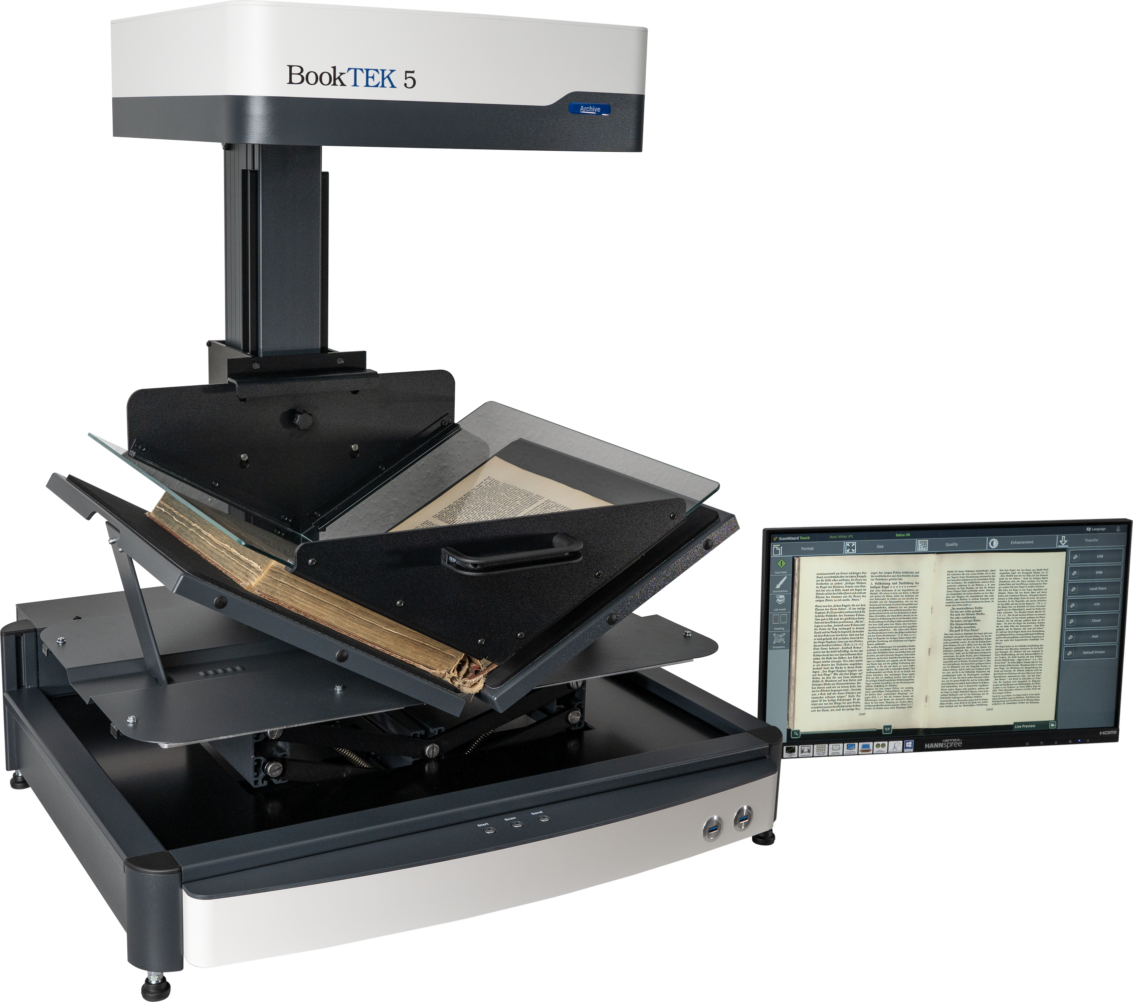 Der BookTEK 5 V3 Archive ist unser vielseitigster Buchscanner, der für die anspruchsvollen Anforderungen von Archiven und Bibliotheken entwickelt wurde. Seine selbsteinstellende Buchwippe passt sich nahtlos an den V-förmigen und flachen Scanmodus an und gewährleistet eine schonende und dennoch präzise Digitalisierung von gebundenen Materialien. Zusammen mit den passenden Glasplatten für optimale Bildqualität liefert er außergewöhnliche Ergebnisse und bewahrt dabei die Integrität empfindlicher oder historischer Dokumente. Perfekt für großvolumige Digitalisierungsprojekte, bei denen Genauigkeit und Effizienz entscheidend sind, selbst im 24/7-Betrieb.