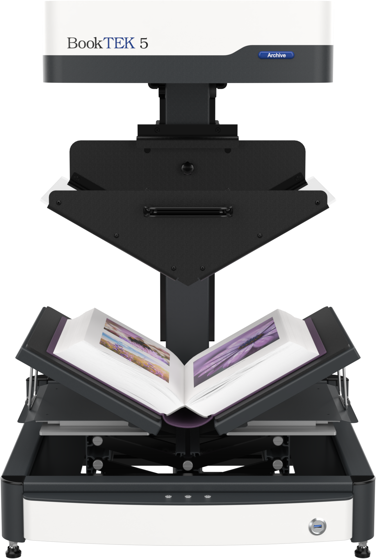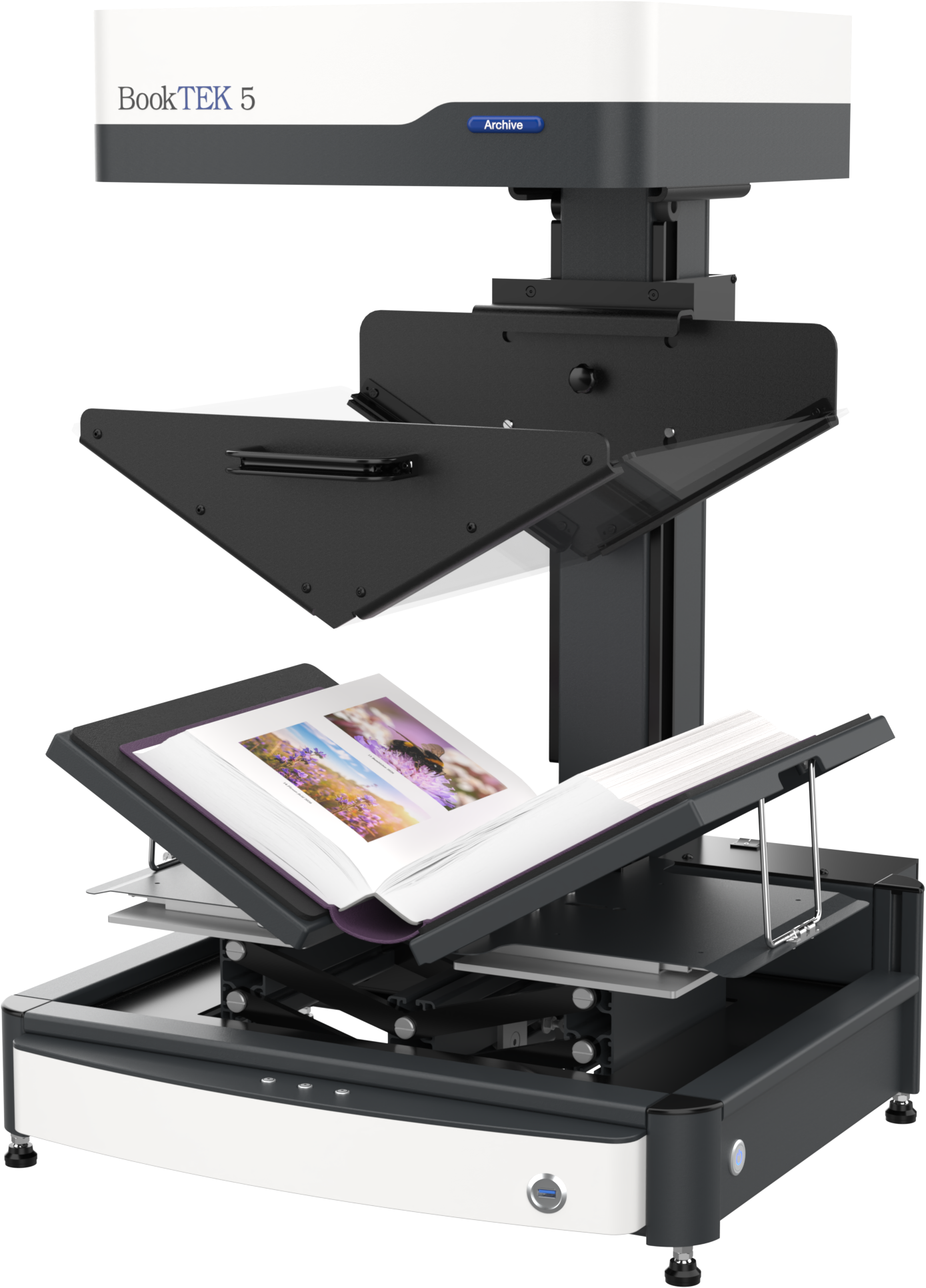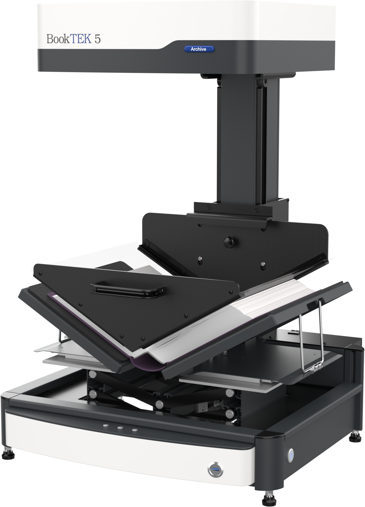 The BookTEK 5 V3 Archive is our most versatile book scanner, designed to meet the demanding needs of archives and libraries. Its self-adjusting book cradle seamlessly adapts to both V-shaped and flat scanning modes, ensuring gentle yet precise digitization of bound materials. Paired with matching glass plates for optimal image quality, it delivers exceptional results while preserving the integrity of delicate or historical documents. Perfect for high-volume digitization projects where accuracy and efficiency are key, even in 24/7 operation.