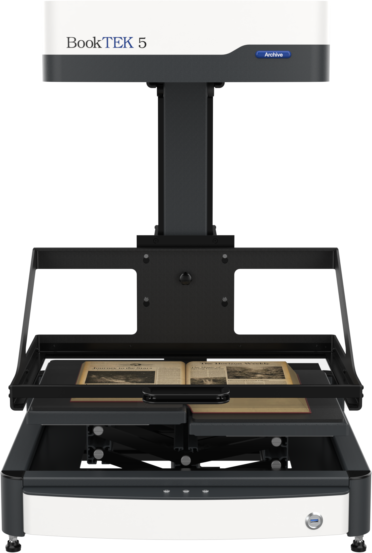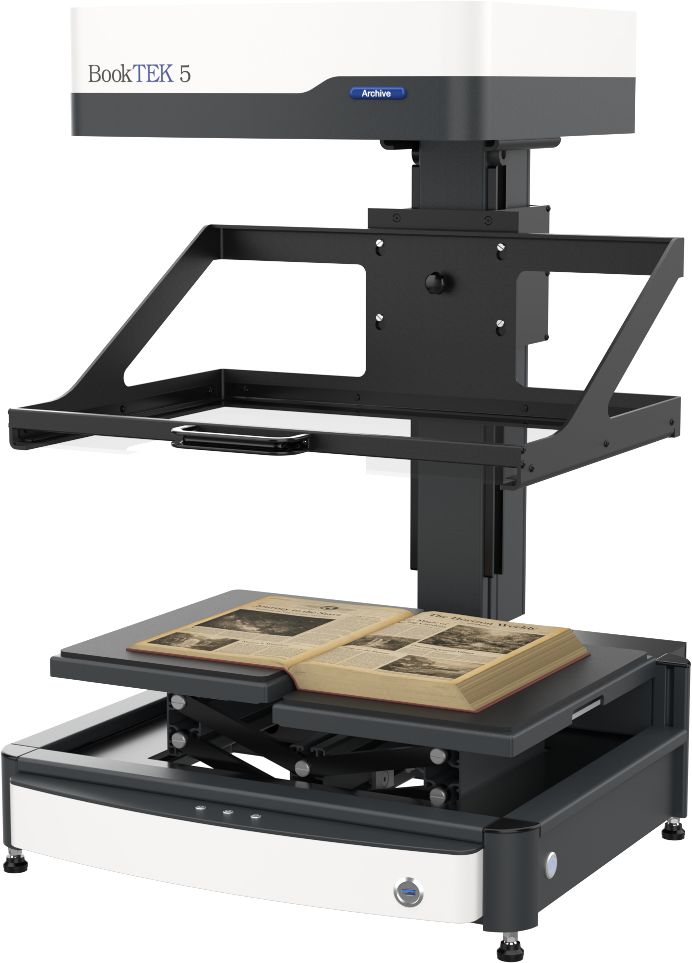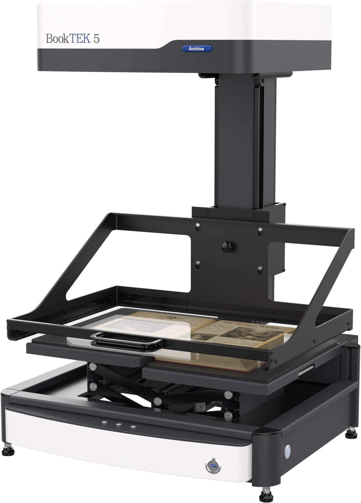 The BookTEK 5 V3 Archive is our most versatile book scanner, designed to meet the demanding needs of archives and libraries. Its self-adjusting book cradle seamlessly adapts to both V-shaped and flat scanning modes, ensuring gentle yet precise digitization of bound materials. Paired with matching glass plates for optimal image quality, it delivers exceptional results while preserving the integrity of delicate or historical documents. Perfect for high-volume digitization projects where accuracy and efficiency are key, even in 24/7 operation.