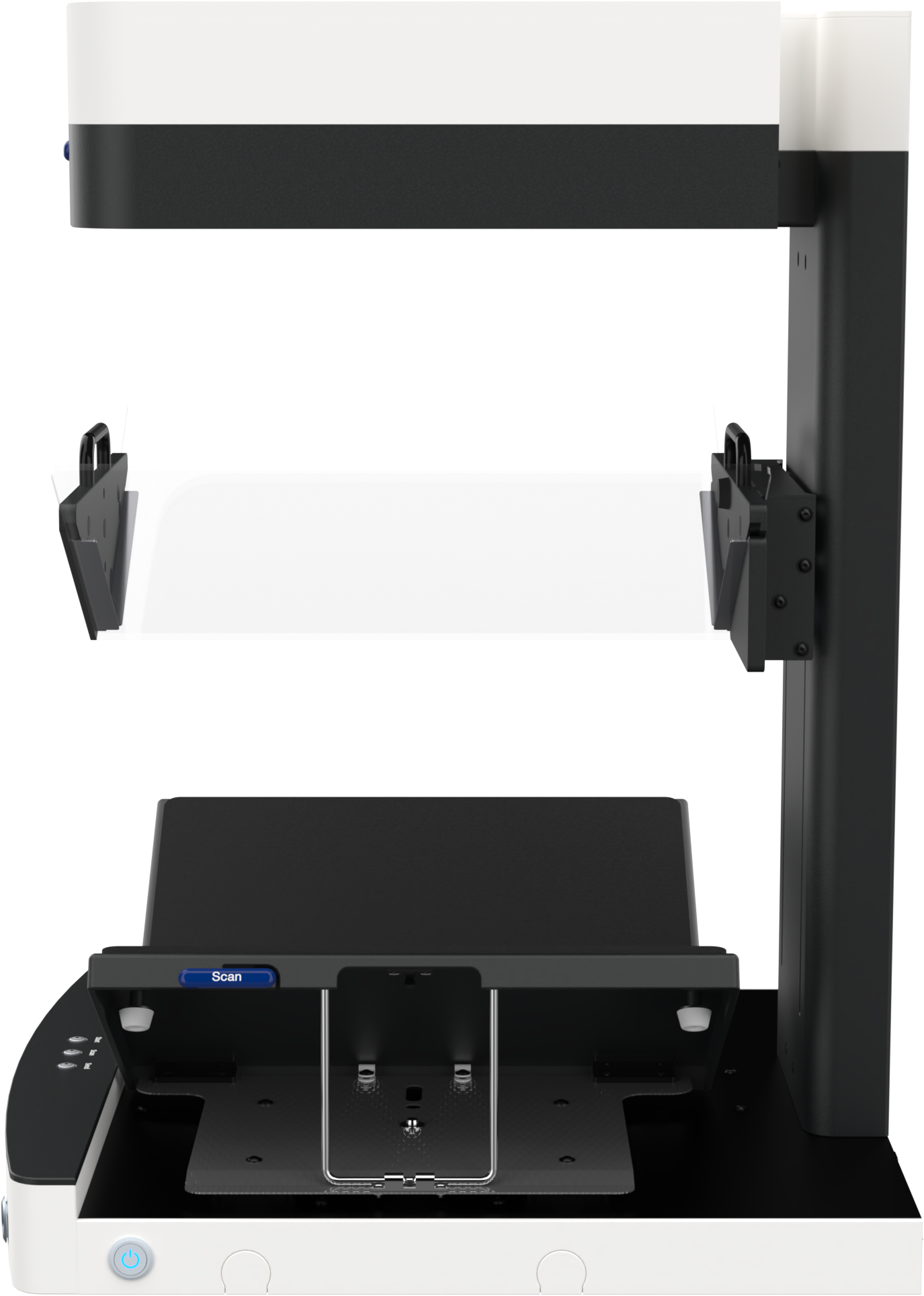 The V-shaped glass plate is seamlessly controlled via ScanWizard’s enhanced user interface. The new control panel, featuring animated function buttons, allows for horizontal movement, speed adjustment, and setting the post-scan position of the glass plate, which can be customized to any level, not just the top or bottom.