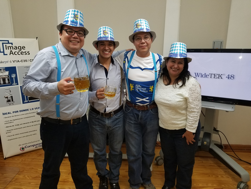 Manuel Paradis, Director of Sales in the region, shared with the audience a presentation covering the mission of Image Access, product portfolio, the key advantages in our technology, and specifically dedicated time to talk about the launch of the WideTEK 36ART, which caused a great deal of expectation and interest. There were Image Access scanners distributed throughout the area, for those that had specific questions and were interested in having direct contact with our products. At the same time, there was a delicious buffet, adoc with the festivity, offering different types of sausages – Knockwurst, Bratwurst, Bockwurst with mustards, sauerkraut (cabbage), pretzels, potato salad and of course, the famous beer on tap could not be missed.